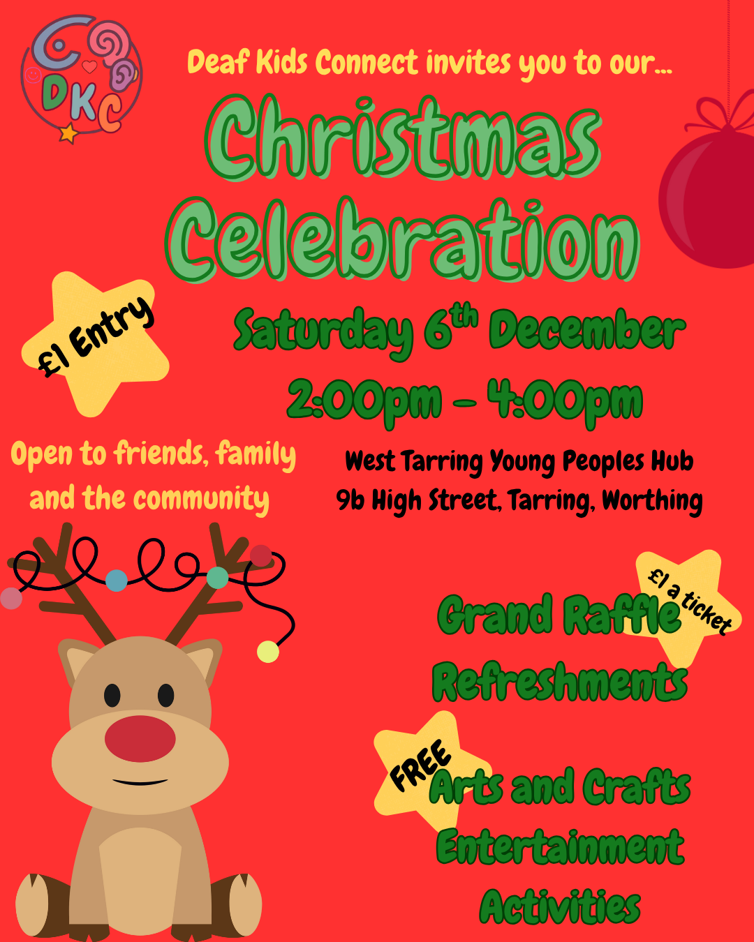 We are opening this event to our friends, families and members of the community. Come and spread festive cheer with our signing Santa, raffle and refreshments. £1 entry per person, free activities once inside. Please bring change for raffle, refreshments and donations! Thank you